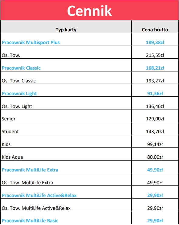 - Multisport Plus (189,38 zł)